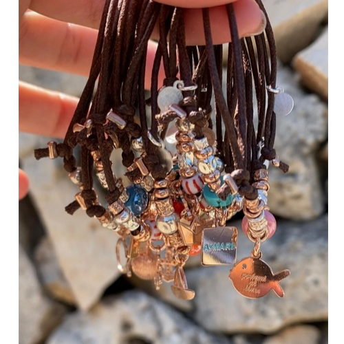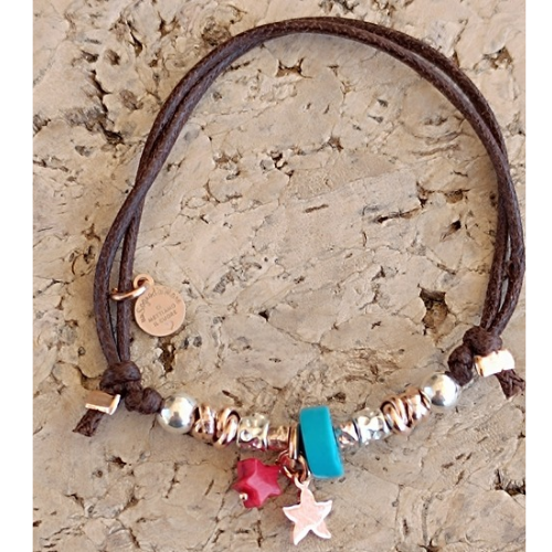 Bracciale realizzato con cordino cotone cerato con pepite in argento nickel free e/o galvanizzate oro rosa ed inserimento di charm.