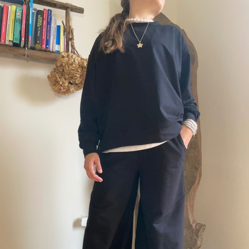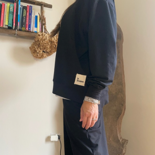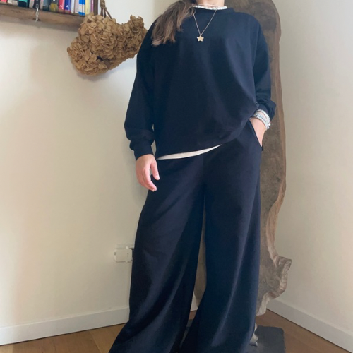 Felpa girocollo dalla linea morbida e leggermente over, con piccoli spacchi laterali e fondo asimmetrico più corto davanti e più lungo sul retro. Un capo confortevole e versatile, ideale per un look casual ma curato, perfetto da indossare tutti i giorni.