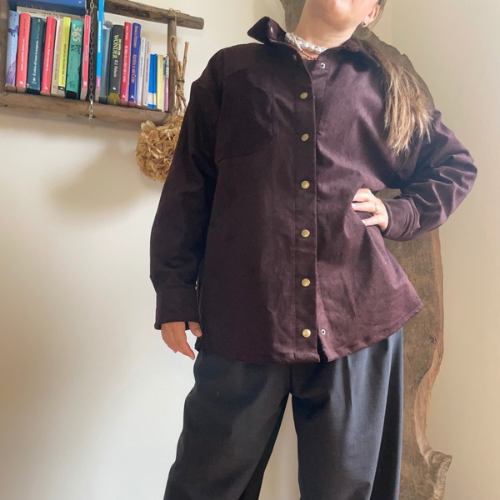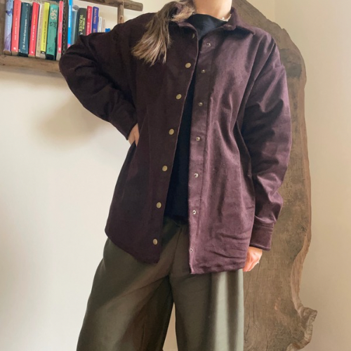 Camicione in velluto a coste, dal taglio classico e dalla vestibilità over, ideale da indossare come camicia o come leggero soprabito.